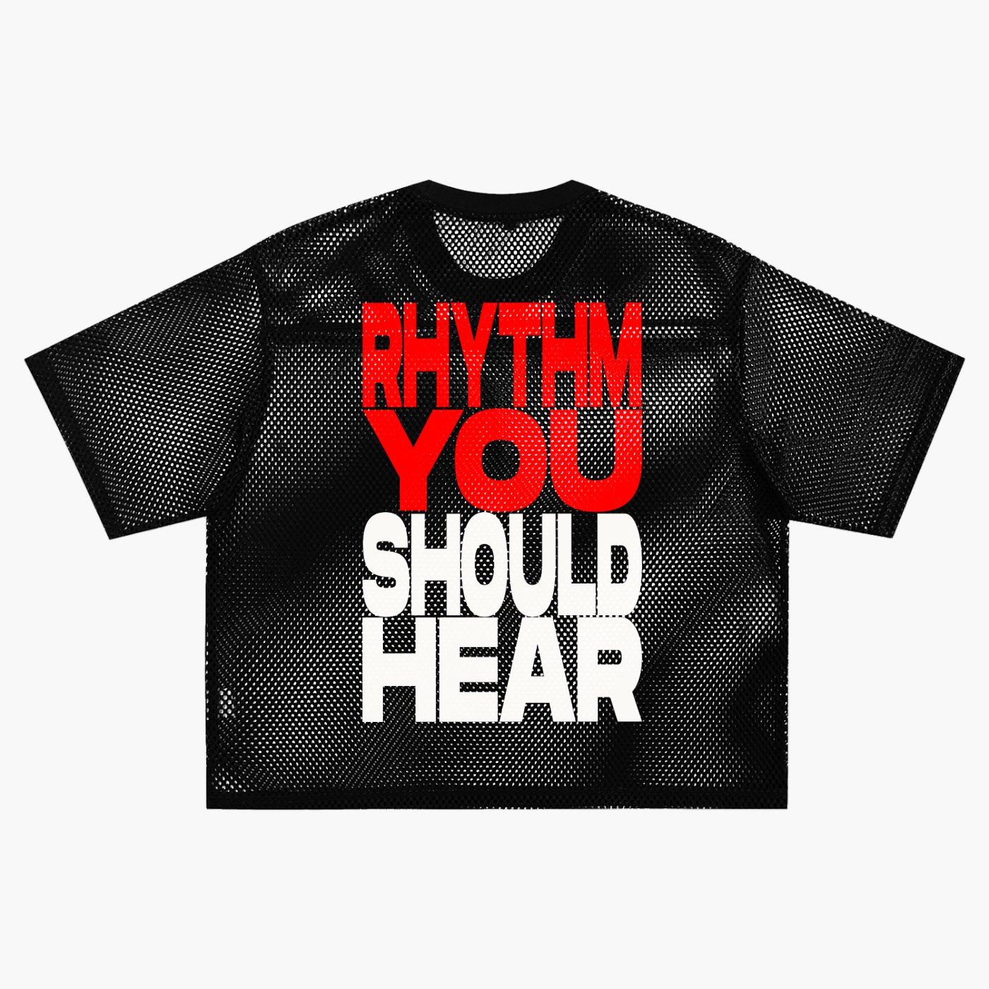The texture adds depth, the transparency adds attitude. Each print takes on the fabric’s grid, breaking into a subtle perforated pattern that makes every design feel alive, not stamped.